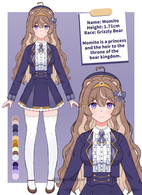 I'm Momito! A rather peculiar princess, because I'm also a bear! I love art in general, I also enjoy Idols a lot!Likes: Vtubers, J-Pop, Vocaloid, Animal Crossing, Plushies, Manhwas, ASMRThis is the reference of my OC!